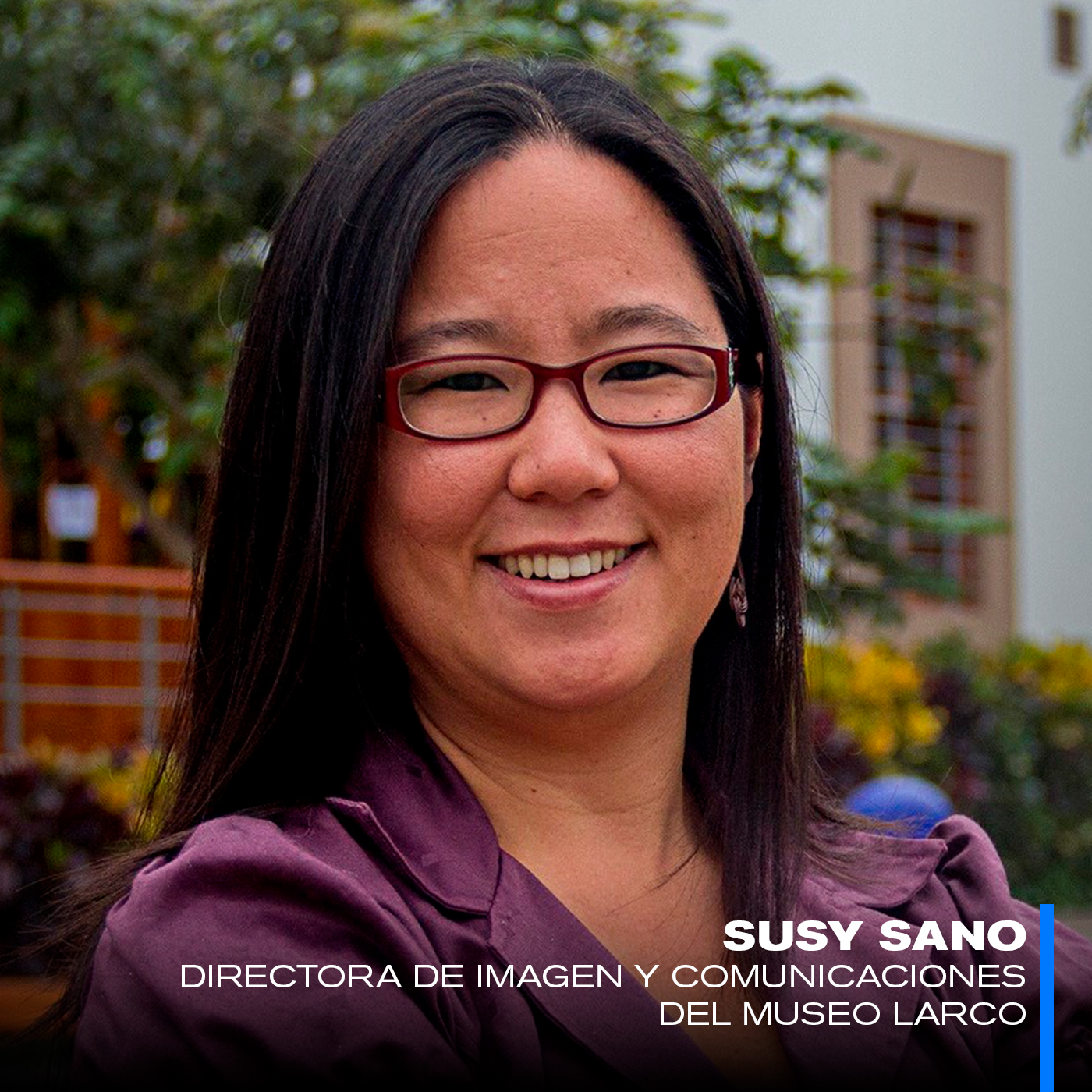 Bachiller en Ciencias y Artes de la Comunicación por la Pontificia Universidad Católica del Perú, con especializaciones en Gestión Cultural, Comunicación corporativa y Marketing digital. Con más de 15 años de experiencia laboral en instituciones educativas y culturales, actualmente se desempeña como Directora de Imagen y Comunicaciones en el Museo Larco.